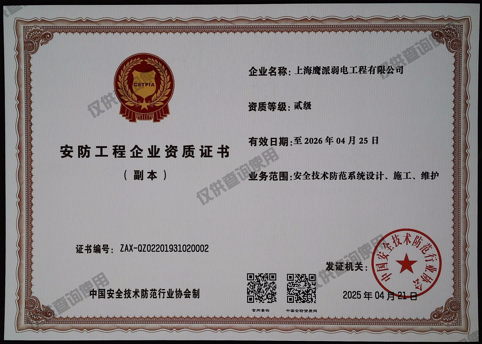 | 国家安防协会资质 | |